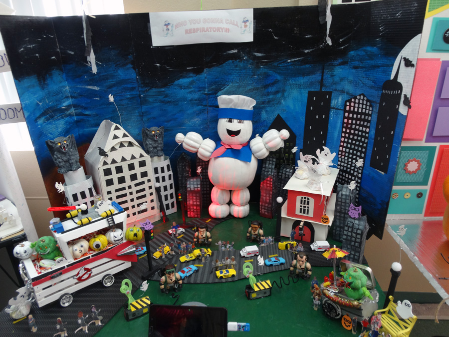 We also had a chili cook off contest, best pumpkin contest, and best costume contest at the Harvest Party. The contests were held for the different departments, staff, and patients. Miguel from Maintenance won the chili cook-off contest again for the second year in a row. The Respiratory Department won the best pumpkin contest with their outstanding Ghostbusters theme. For best costume, Amber Mckintyre from Rehab Alliance won the staff contest and Darianna won the resident contest.